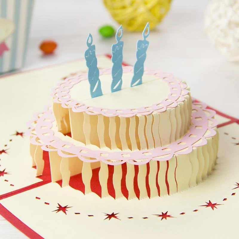 Happy Birthday Cake Handmade Creative Birthday 3d Pop Up Greeting Gift Cards With Butterfly Cutout Free Shipping Set Of 10 Gift Card Tin Card Matchcard Shuffler Aliexpress